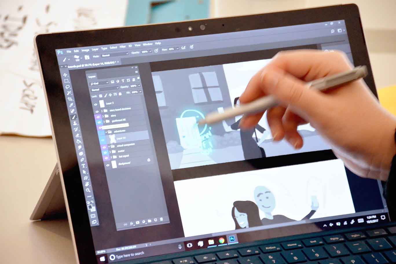 A great idea can be severely undermined if poorly presented, therefore as soon as the wireframes for Scapes were consolidated and we knew the interactions the user could perform, we started working on its vision video to ensure a high-quality, easily understandable explanation of our concept. Scripts were written, followed by iterations of storyboards and eventually a 12+ hours video shoot with eight actors and a full production crew. Green Screens were used on the phones, since most of the visuals of Scapes weren’t finished by the shooting date, and were then replaced with recording of phone screens at a later date.