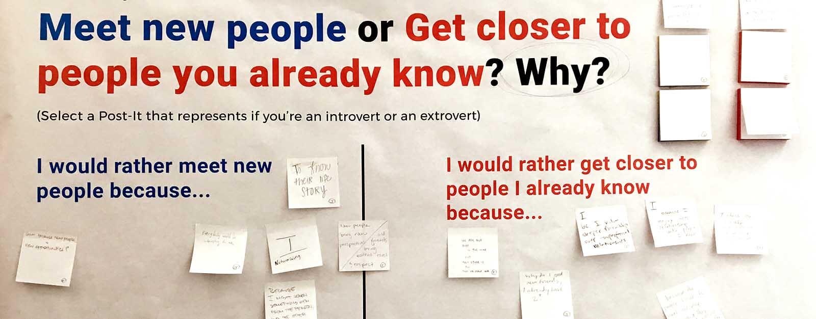 We conducted sixty intercepts with art and design students to understand their current mental model of art as a medium for self-expression and how their intimate social circles developed. Many participants were still perplexed by the breadth of art-related events and semantics concerning intimacy, until we provided examples.