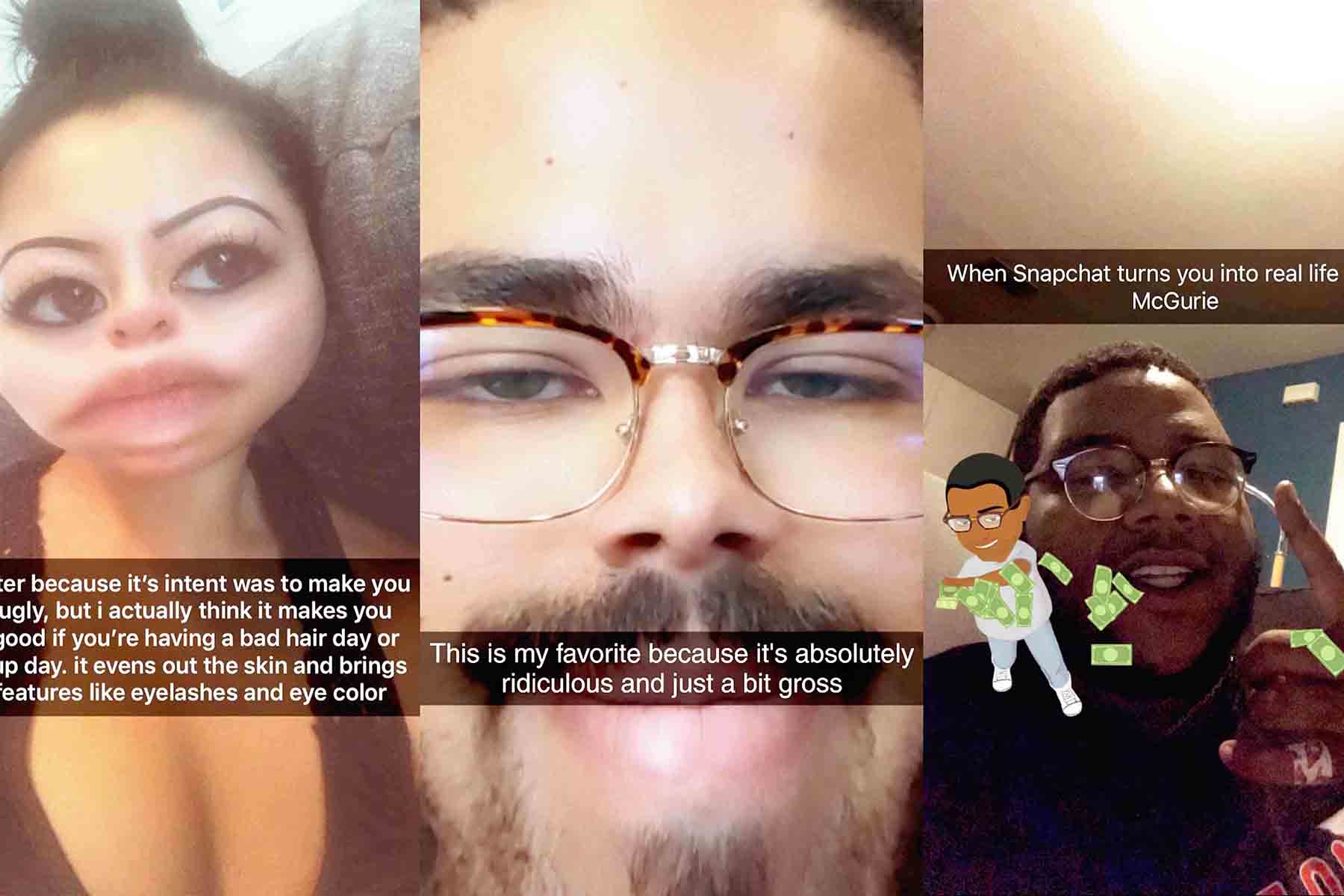 Launching a snapchat probe was our informal way to find out how people interacted with augmented reality, even if they weren’t fully aware or understood the subject. By asking about their favorite filters and the way they interact with the app, we gathered a strong tendency towards humor, such as using the bitmojis to express whom they wish they were, or face filters for laughs or take advantage of their exaggerated proportions to hide flaws and enhance attributes they were proud of.